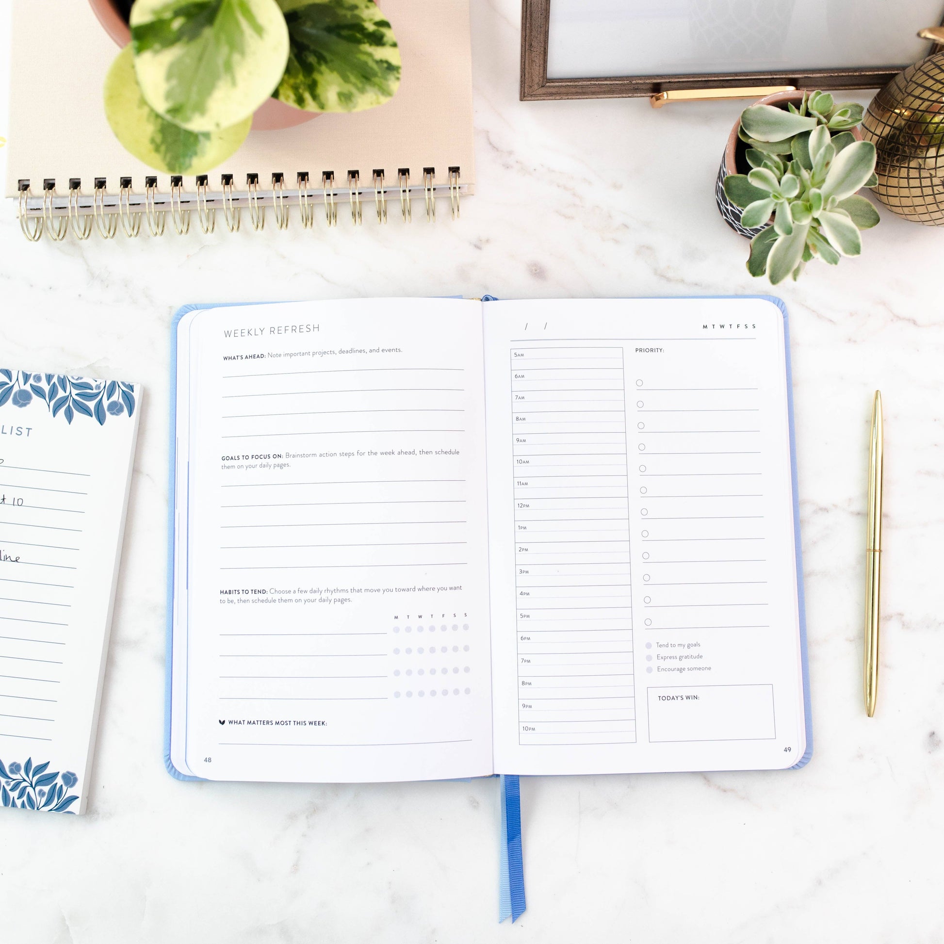 We've combined the thoughtful, intentional Season by Season daily planning pages with our powerful goal-setting process for the most-requested version of PowerSheets. Monday through Friday, enjoy an hourly layout, space for your to-do list, top priorities, and daily gratitude—all in the same place as your goal progress!